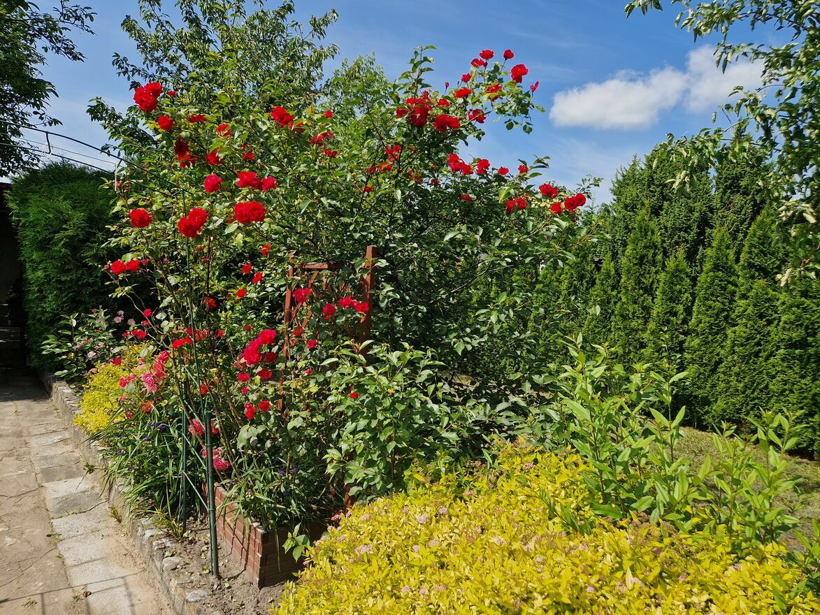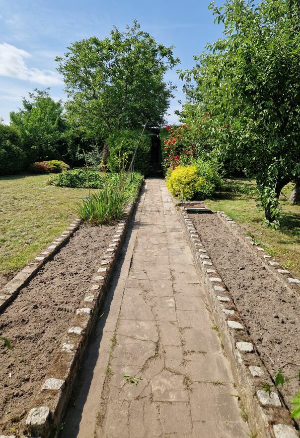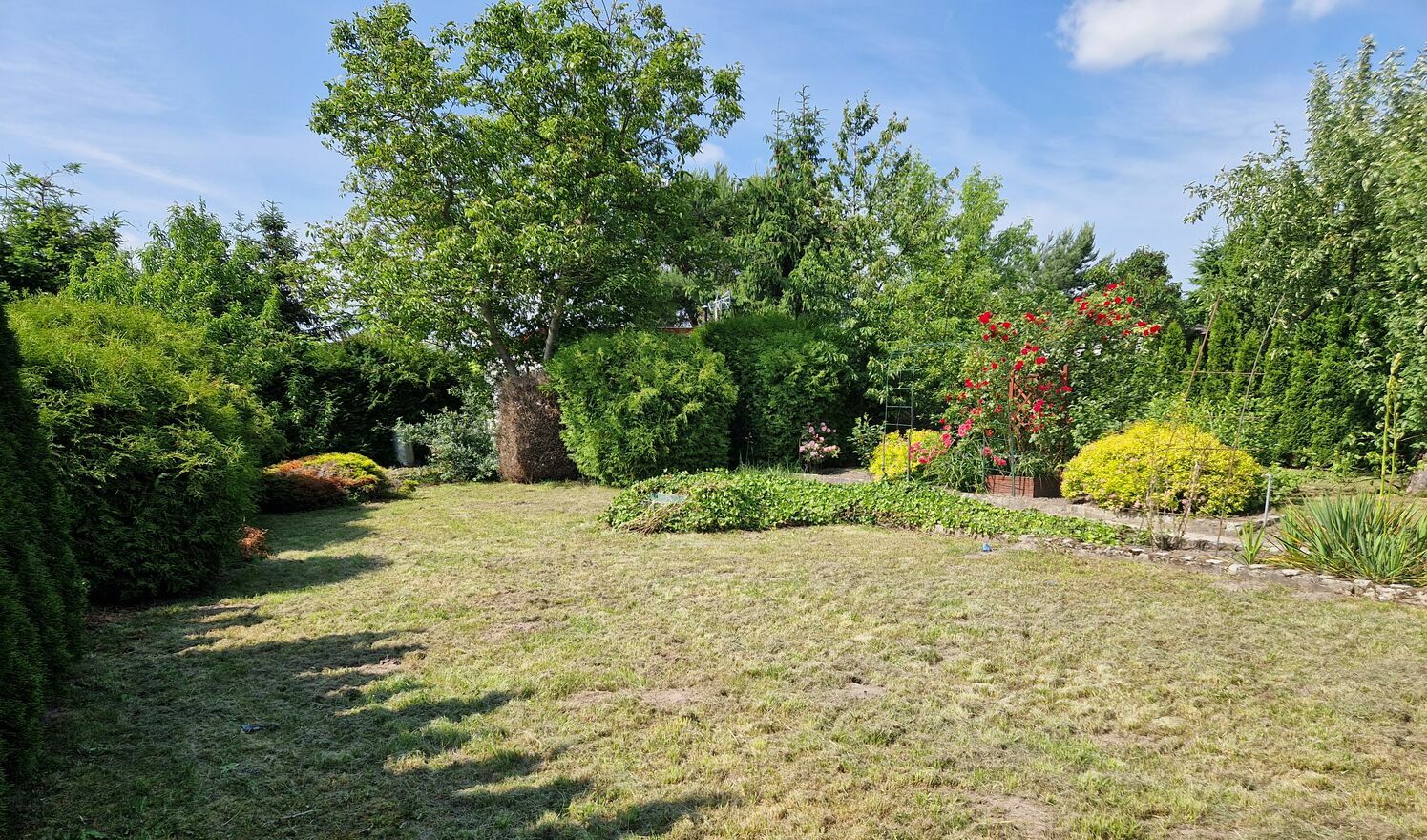 - Zadbany ogród – alejki, rabaty, drzewa, krzewy ozdobne i owocowe